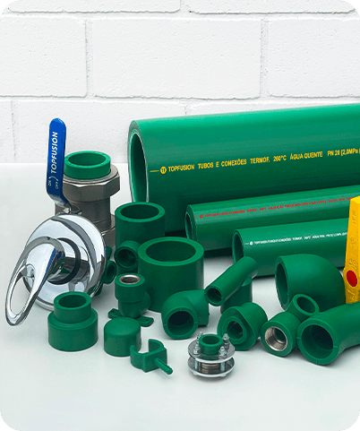 A linha TopHidro conta com tubos rígidos e conexões PPR verde para linhas hidráulicas, em sua maioria água quente e fria! Essa linha é ideal para seus projetos nas prumadas de água, linhas industriais, tubulações de abastecimento de água gelada, entre muitos outros!